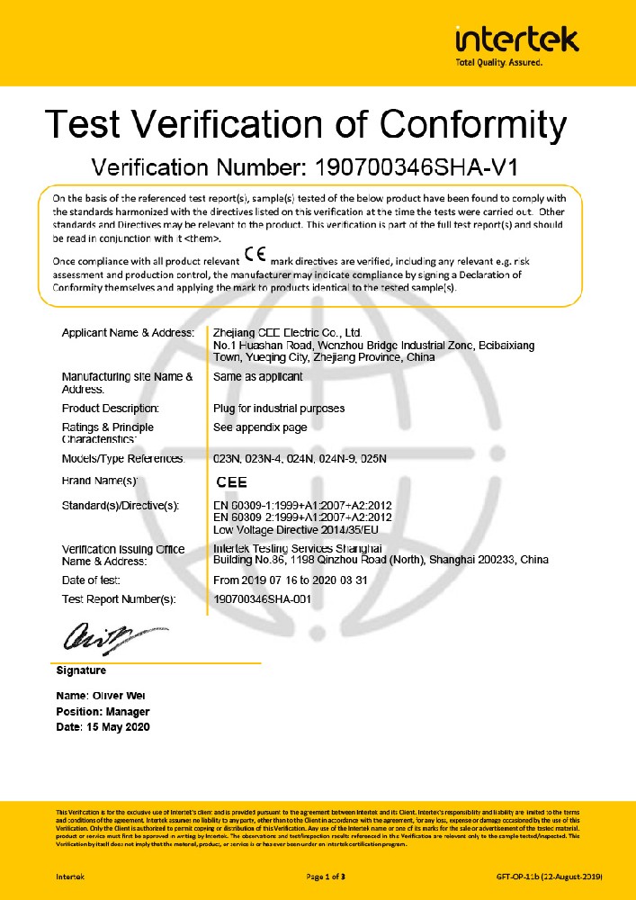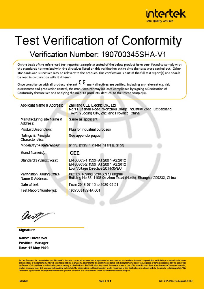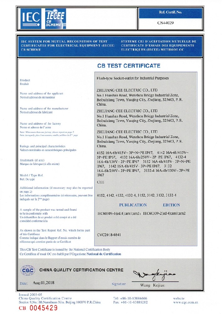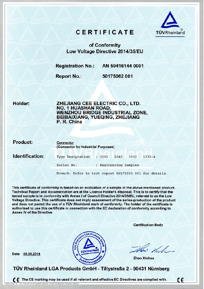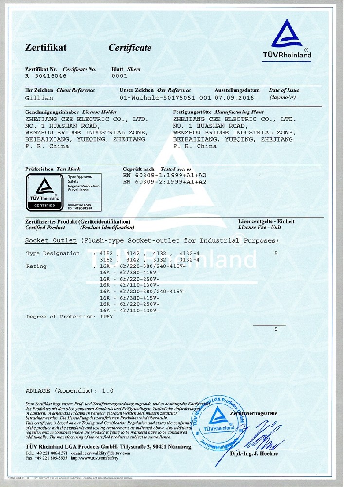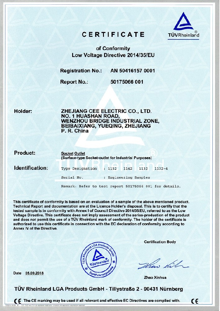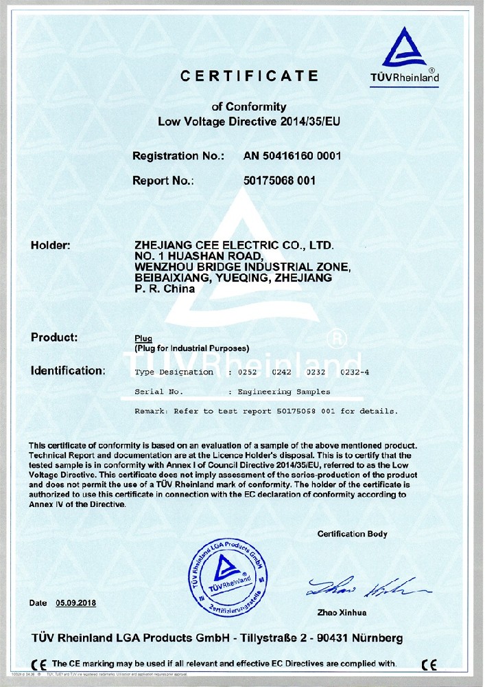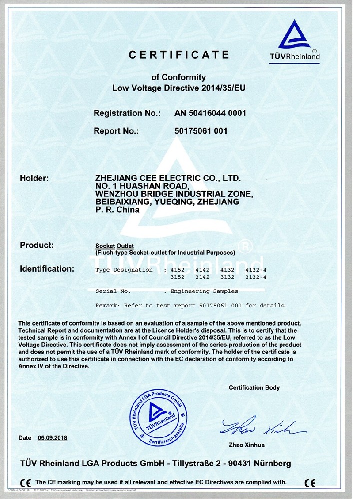 品質合規方面,公司全面推行ISO9001:2015質量管理體系,核心產品符合IEC 60309-1-2、EN 60309-1-2等國際標準,通過Intertek、TUV Rheinland、CQC等權威機構認證,持有TUV、SEMKO、CE、CCC等多項資質證書,且完全滿足RoHS、Reach等國際法規要求。